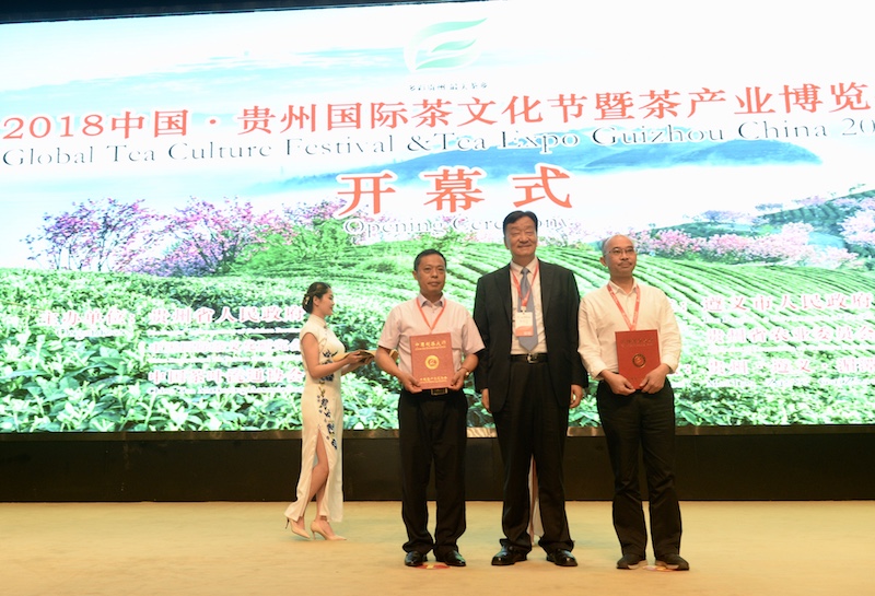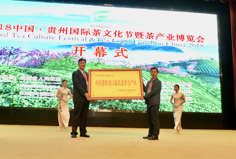 在簡(jiǎn)約隆重、氣氛熱烈的開(kāi)幕式上,遵義市委龍長(cháng)春書(shū)記、聯(lián)合利華北亞區曾錫文副總裁、國際茶商代表以馬利·貝特·凱穆泰先后致辭。隨后,中國茶葉流通協(xié)會(huì )會(huì )長(cháng)王慶發(fā)布《新時(shí)代貴州省產(chǎn)業(yè)之競爭力》并為獲得首批“中國制茶大師”(綠茶類(lèi))殊榮的貴州湄潭綠之源茶業(yè)銷(xiāo)售有限公司劉建輝、黔南州都勻茶場(chǎng)副場(chǎng)長(cháng)歐平勇兩位大師頒發(fā)了證書(shū)。接著(zhù),王慶會(huì )長(cháng)與周?chē)粫?huì )長(cháng)先后向遵義市和湄潭縣頒發(fā)了“中國茶葉出口最具競爭力產(chǎn)區”、 “中國茶工業(yè)博物館”匾牌。最后,貴州省委副書(shū)記、省長(cháng)諶貽琴發(fā)表講話(huà),并宣布2018中國·貴州國際茶文化節暨茶產(chǎn)業(yè)博覽會(huì )開(kāi)幕。